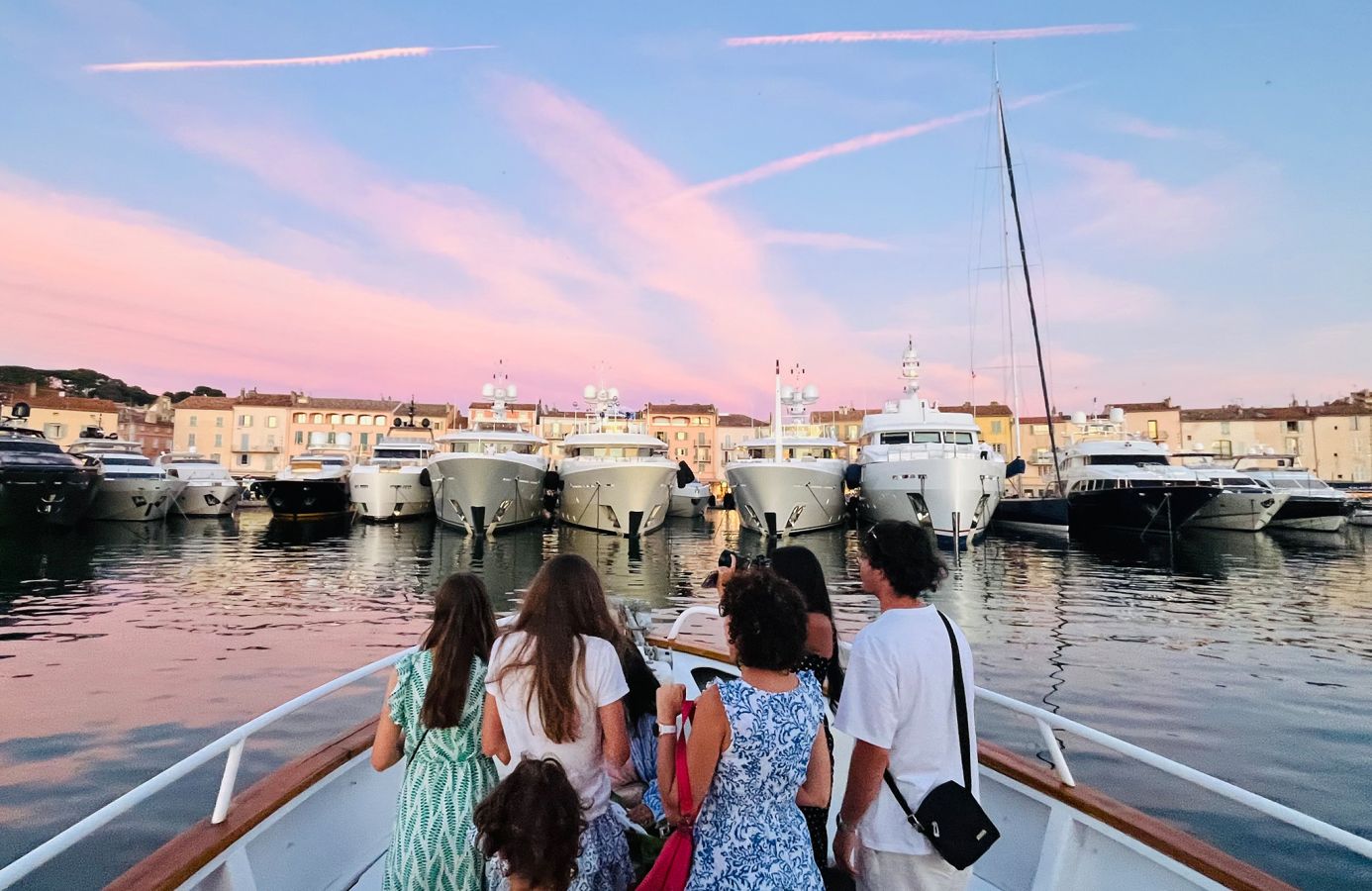 En fin de journée, l’atmosphère est souvent plus apaisée : moins de mouvement, une sensation de calme, une sortie plus contemplative. On se laisse porter au fil de l’eau, avec Saint-Tropez en toile de fond.