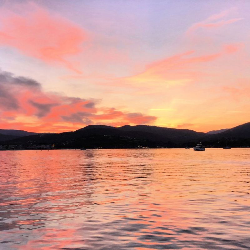 Le coucher de soleil en mer, c’est un moment à part. La lumière devient chaude et rasante, les couleurs se saturent, et le golfe s’illumine. On prend le temps, on respire… et on profite.